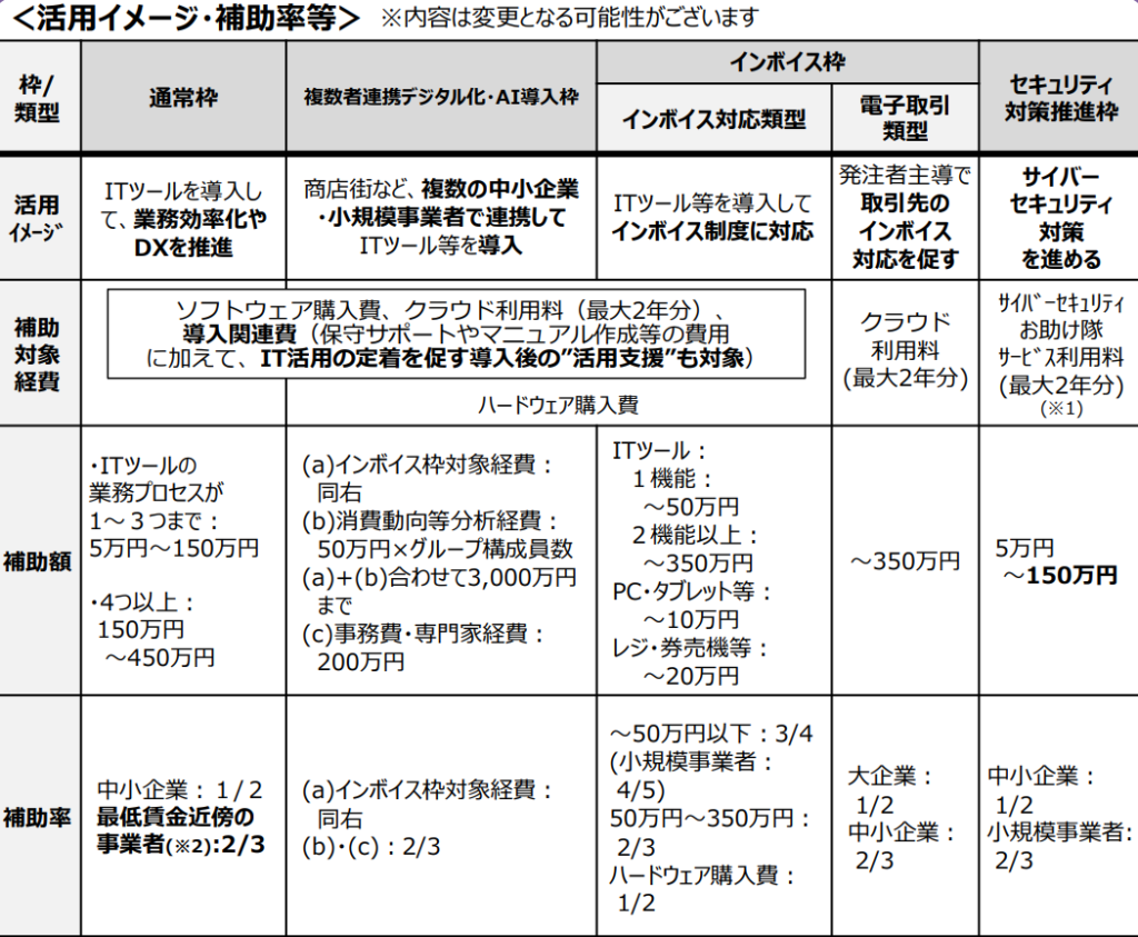 もっとも、現段階では制度の骨子が示されているにとどまり、従来のIT導入補助金と比較して、補助対象や要件に大きな変更点はまだ確認されていません。ただし、制度名称に「AI」が明記されたことからも分かるとおり、今後の公募要領や詳細設計の中で、支援内容がより高度なデジタル活用・AI活用へとシフトしていく可能性は十分に考えられます。